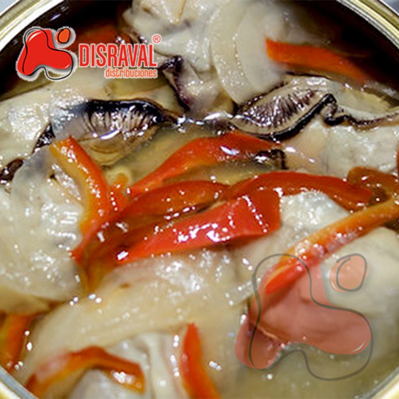 Ostras aliñadas en escabeche suave con verduras y toque de Albariño. Un sabor excepcional.
